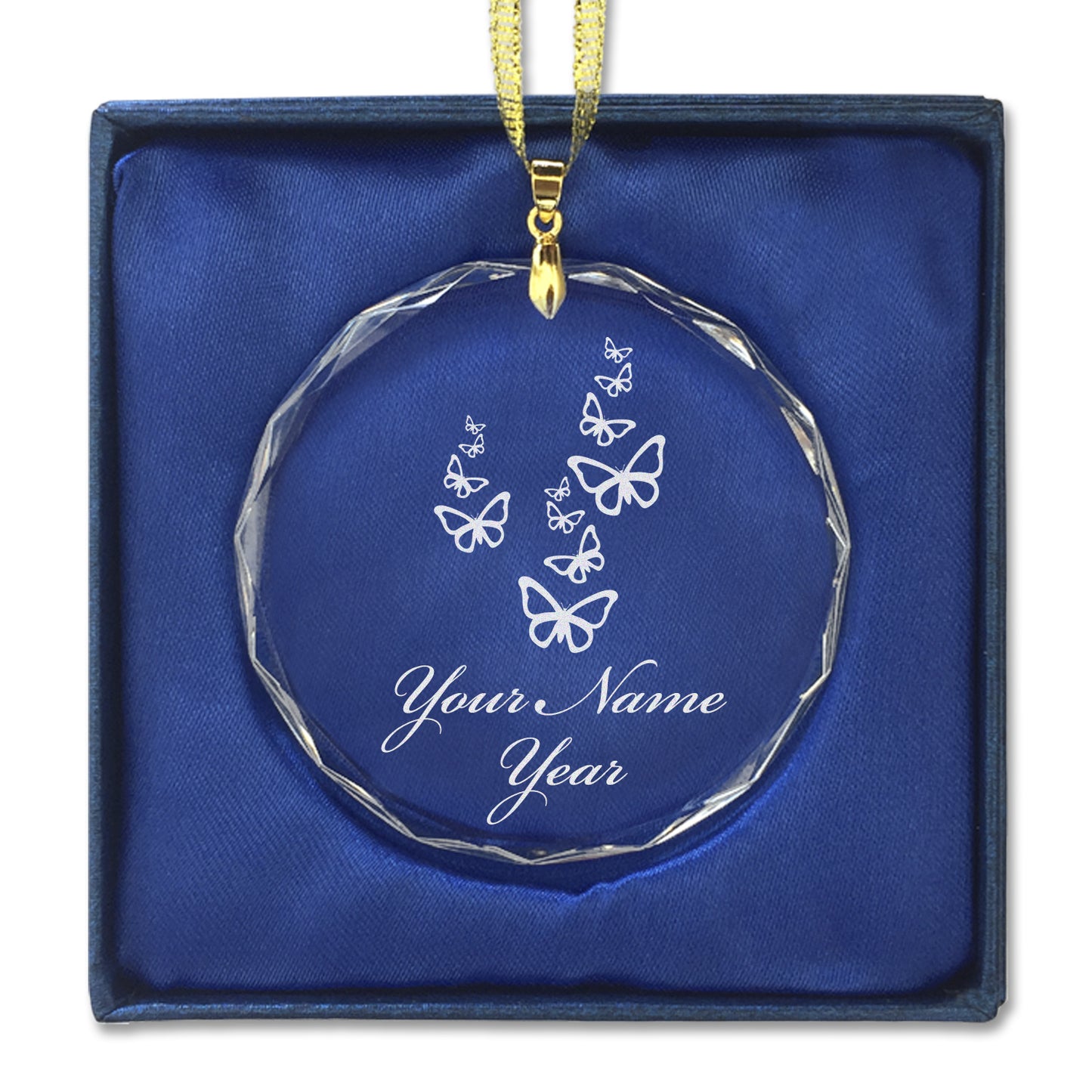 LaserGram Christmas Ornament, Butterflies, Personalized Engraving Included (Round Shape)