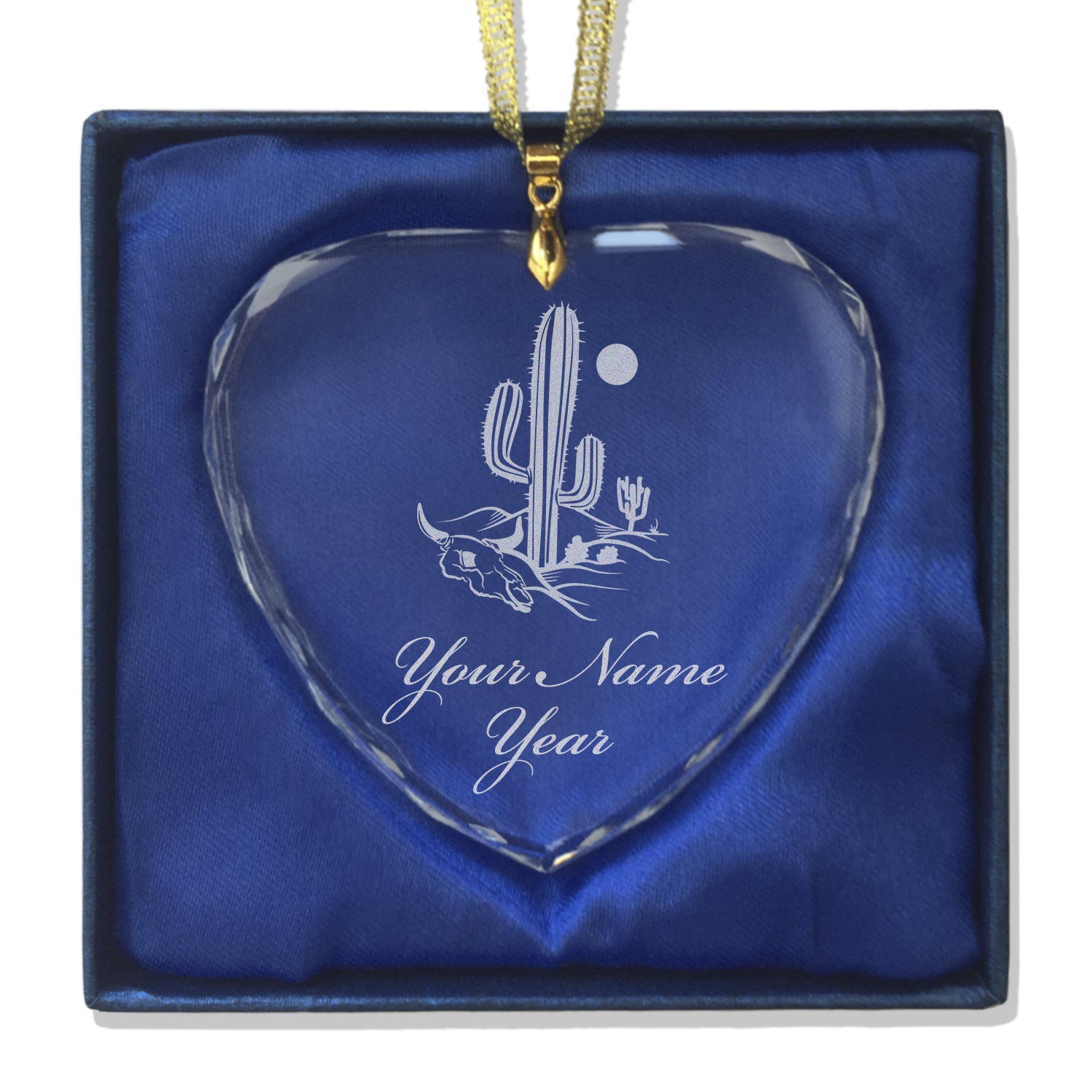 LaserGram Christmas Ornament, Cactus, Personalized Engraving Included (Heart Shape)