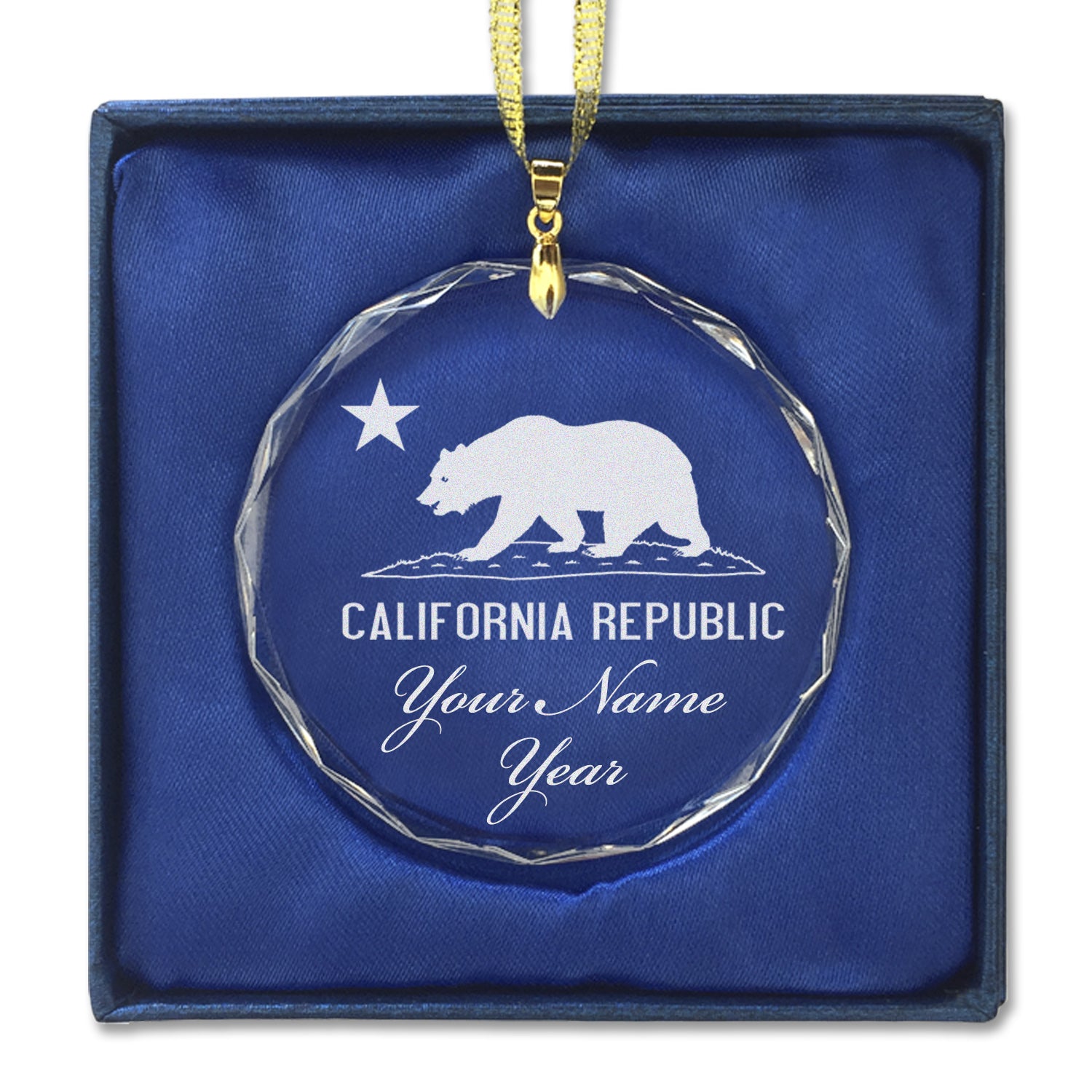 LaserGram Christmas Ornament, California Republic Bear Flag, Personalized Engraving Included (Round Shape)