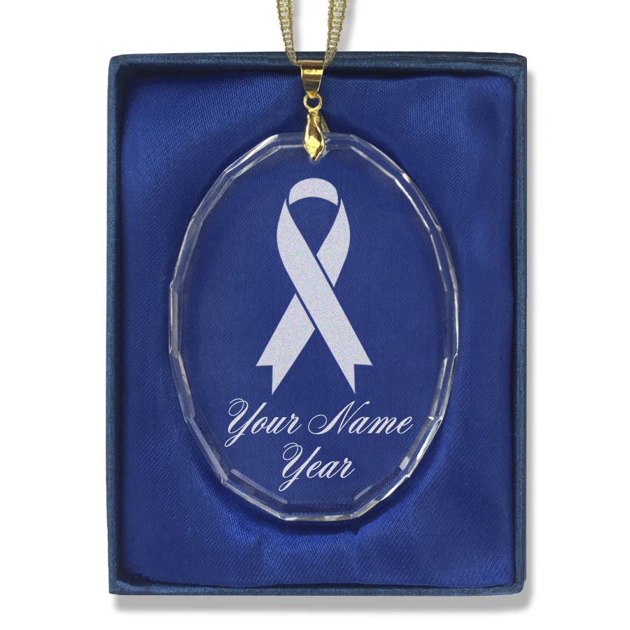 LaserGram Christmas Ornament, Cancer Awareness Ribbon, Personalized Engraving Included (Oval Shape)