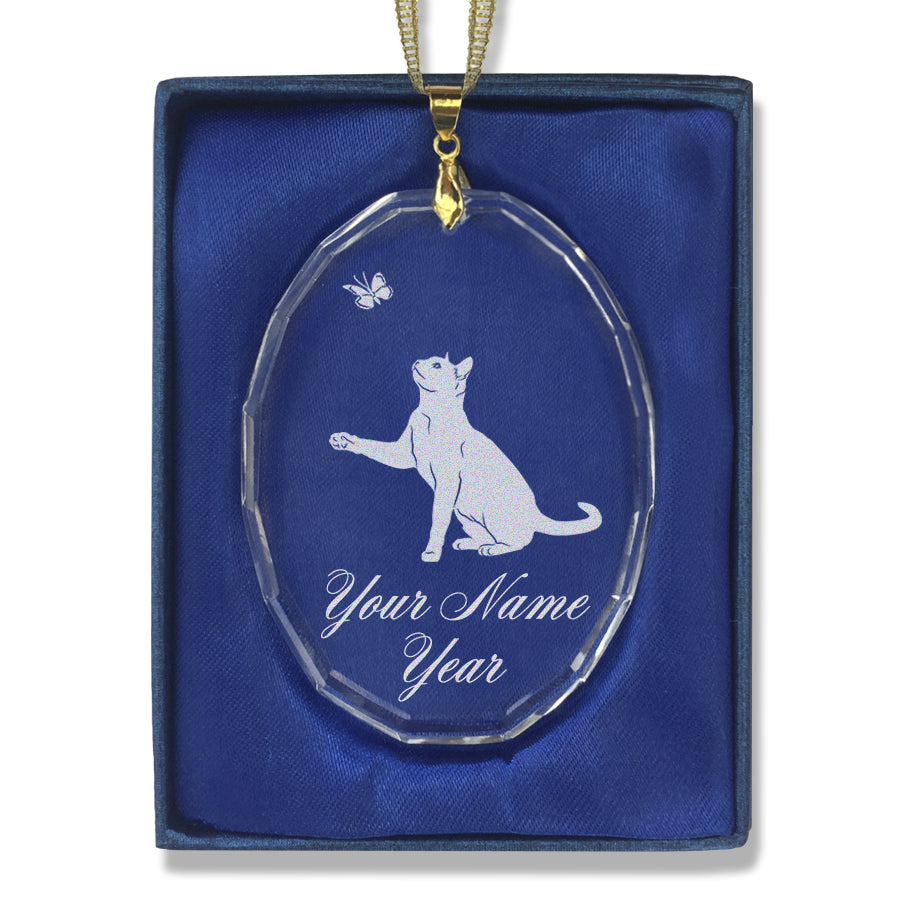 LaserGram Christmas Ornament, Cat with Butterfly, Personalized Engraving Included (Oval Shape)