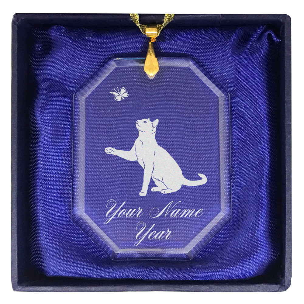 LaserGram Christmas Ornament, Cat with Butterfly, Personalized Engraving Included (Rectangle Shape)