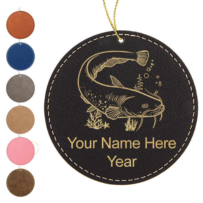 LaserGram Christmas Ornament, Catfish, Personalized Engraving Included (Faux Leather, Round Shape)