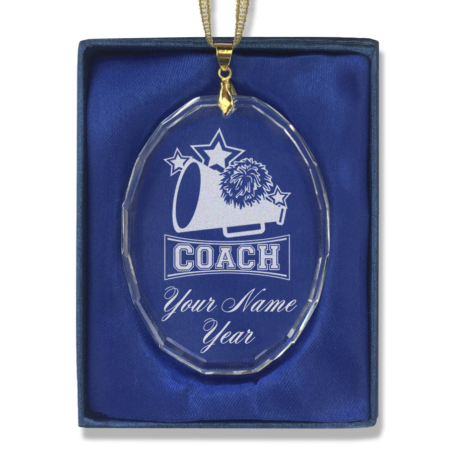 LaserGram Christmas Ornament, Cheerleading Coach, Personalized Engraving Included (Oval Shape)
