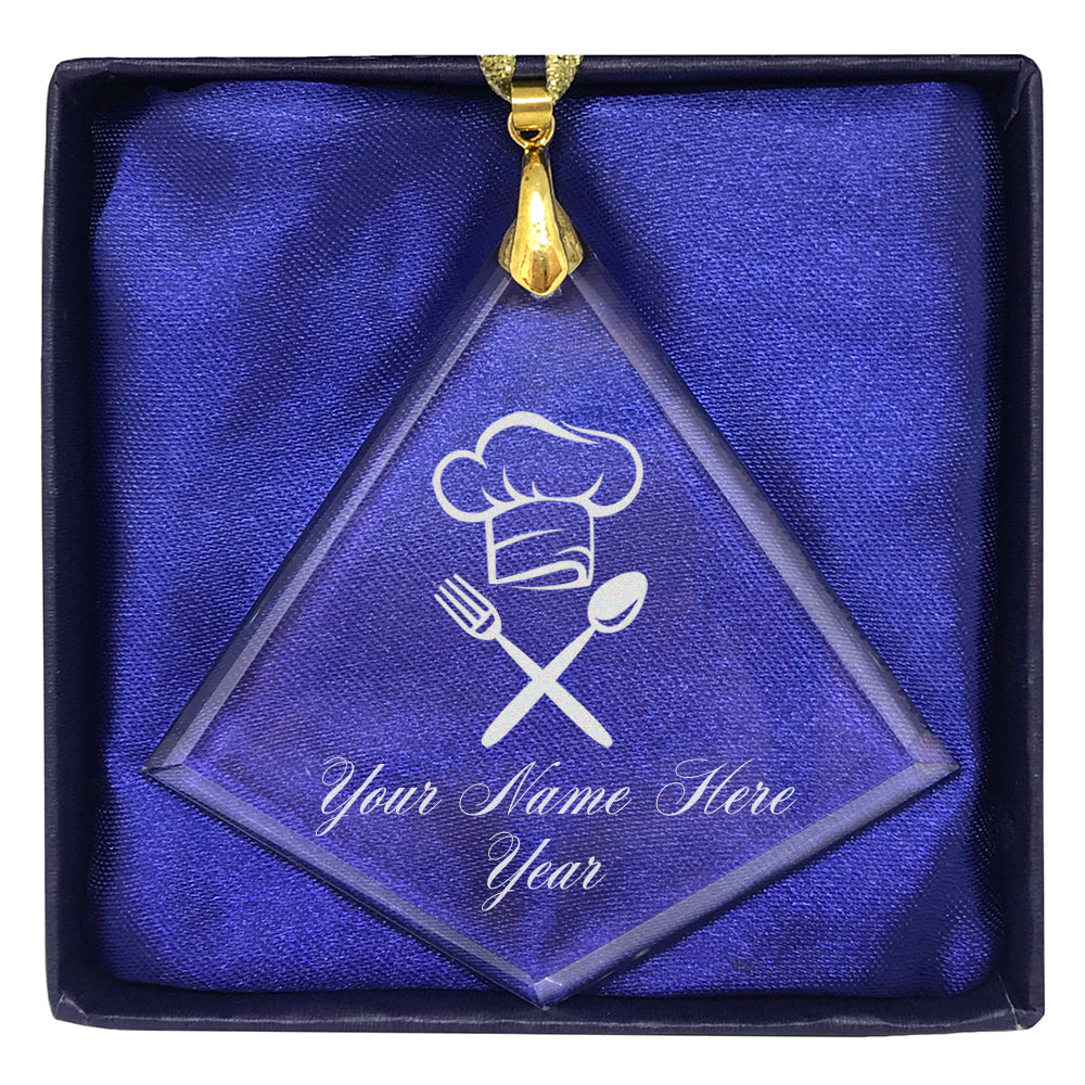 LaserGram Christmas Ornament, Chef Hat, Personalized Engraving Included (Diamond Shape)