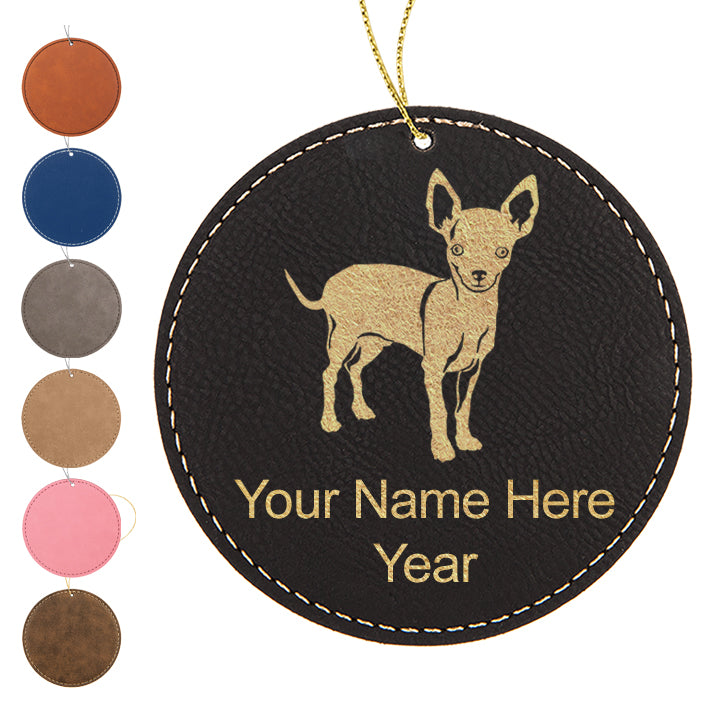 LaserGram Christmas Ornament, Chihuahua Dog, Personalized Engraving Included (Faux Leather, Round Shape)