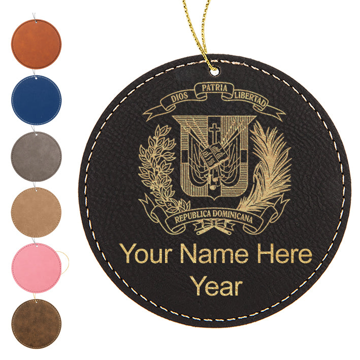 LaserGram Christmas Ornament, Coat of Arms Dominican Republic, Personalized Engraving Included (Faux Leather, Round Shape)