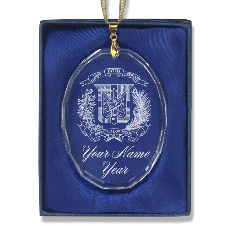 LaserGram Christmas Ornament, Coat of Arms Dominican Republic, Personalized Engraving Included (Oval Shape)