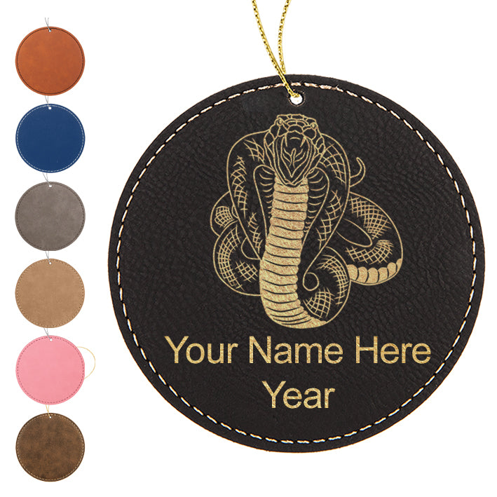 LaserGram Christmas Ornament, Cobra Snake, Personalized Engraving Included (Faux Leather, Round Shape)