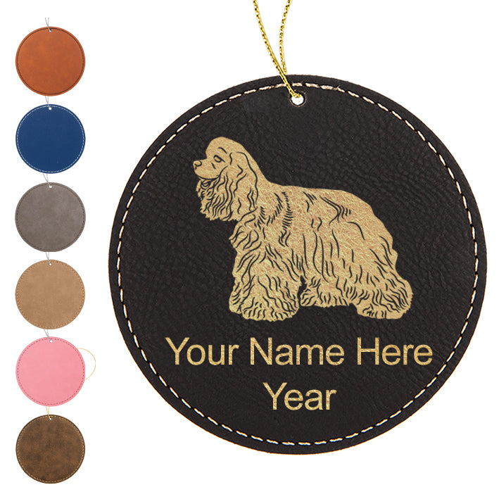 LaserGram Christmas Ornament, Cocker Spaniel Dog, Personalized Engraving Included (Faux Leather, Round Shape)