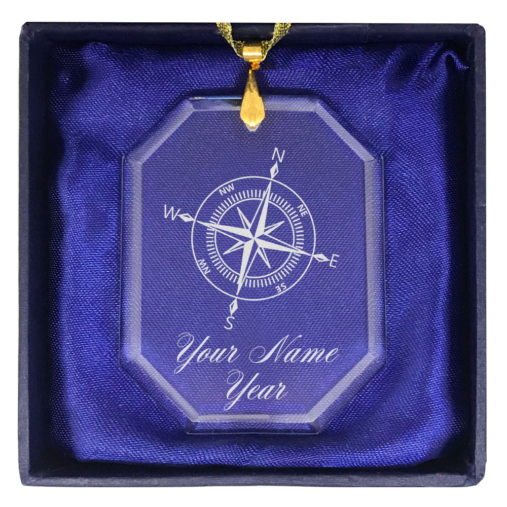 LaserGram Christmas Ornament, Compass Rose, Personalized Engraving Included (Rectangle Shape)