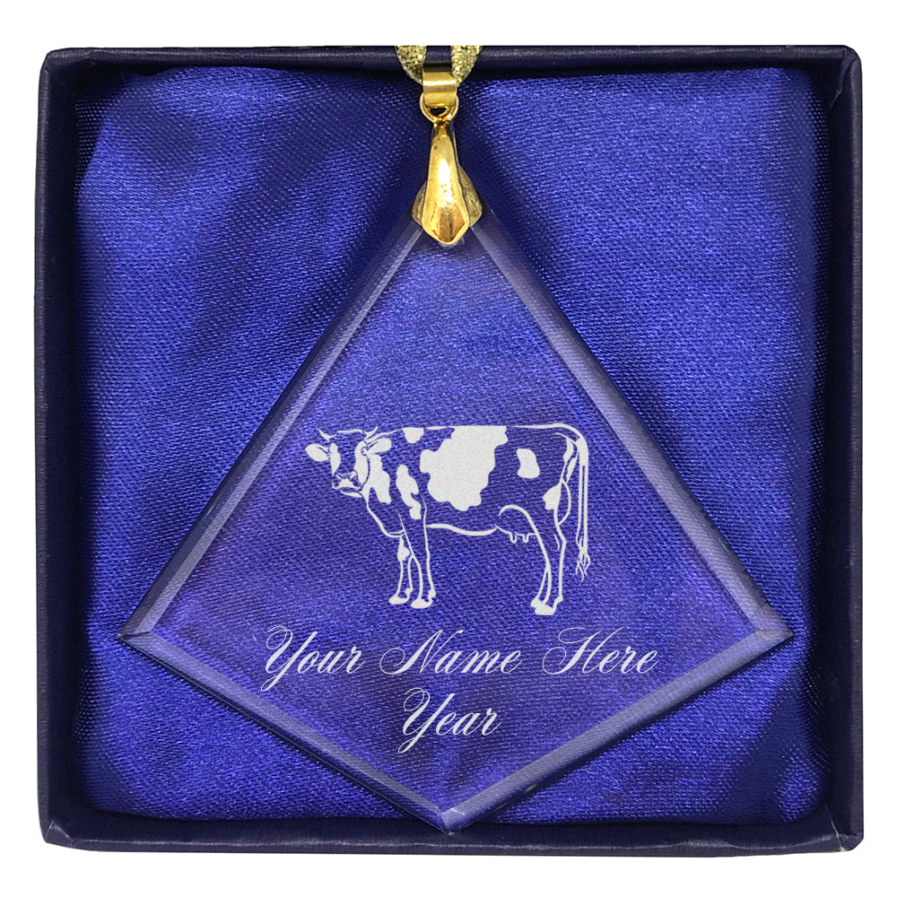 LaserGram Christmas Ornament, Cow, Personalized Engraving Included (Diamond Shape)