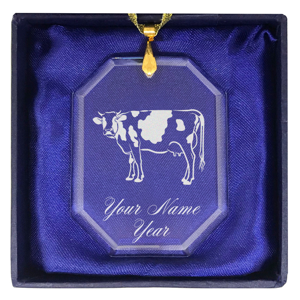 LaserGram Christmas Ornament, Cow, Personalized Engraving Included (Rectangle Shape)
