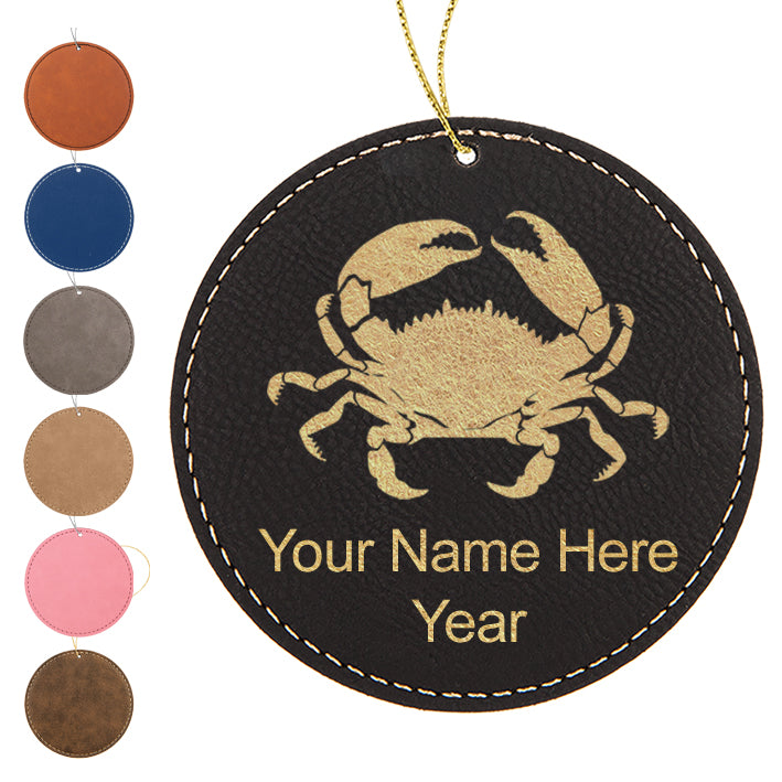 LaserGram Christmas Ornament, Crab, Personalized Engraving Included (Faux Leather, Round Shape)