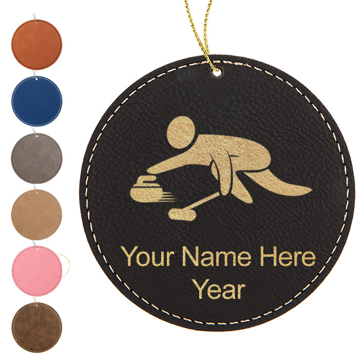 LaserGram Christmas Ornament, Curling Figure, Personalized Engraving Included (Faux Leather, Round Shape)