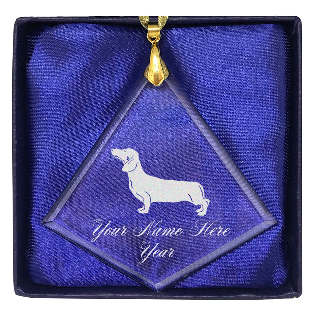 LaserGram Christmas Ornament, Dachshund Dog, Personalized Engraving Included (Diamond Shape)
