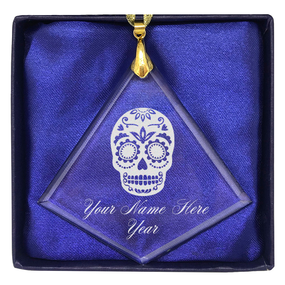 LaserGram Christmas Ornament, Day of the Dead, Personalized Engraving Included (Diamond Shape)