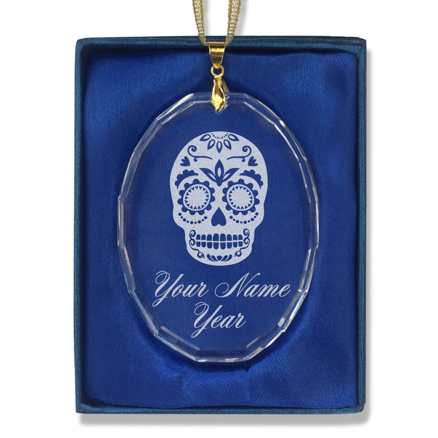 LaserGram Christmas Ornament, Day of the Dead, Personalized Engraving Included (Oval Shape)