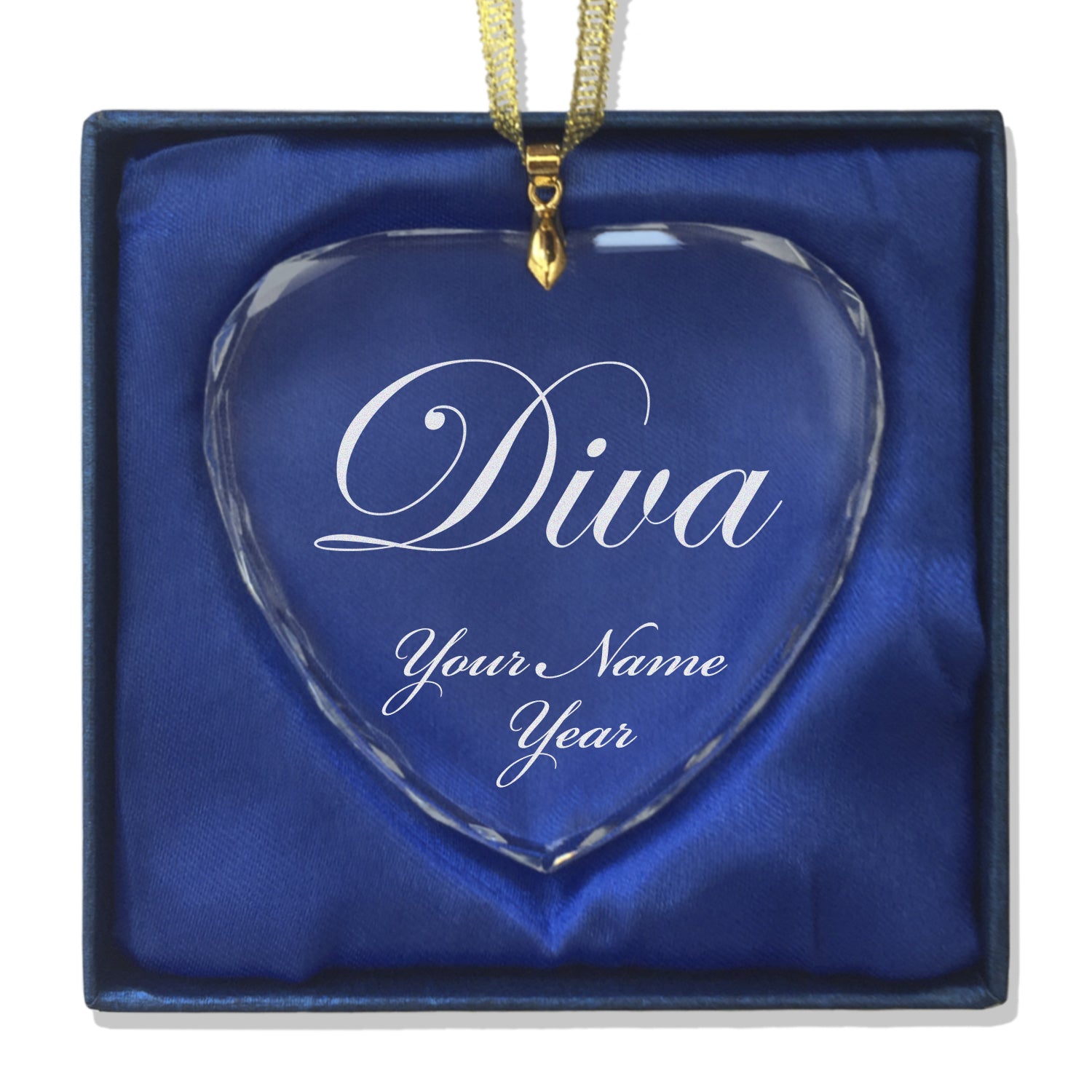 LaserGram Christmas Ornament, Diva, Personalized Engraving Included (Heart Shape)