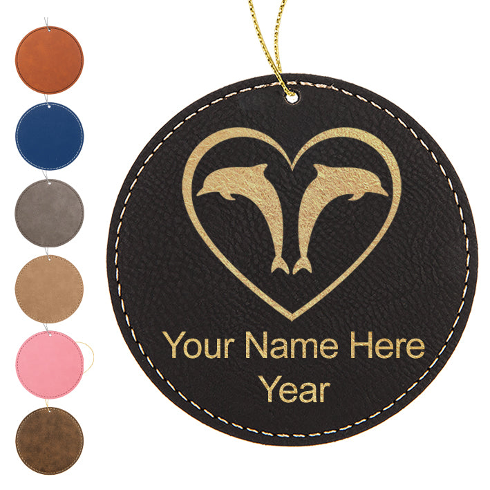 LaserGram Christmas Ornament, Dolphin Heart, Personalized Engraving Included (Faux Leather, Round Shape)