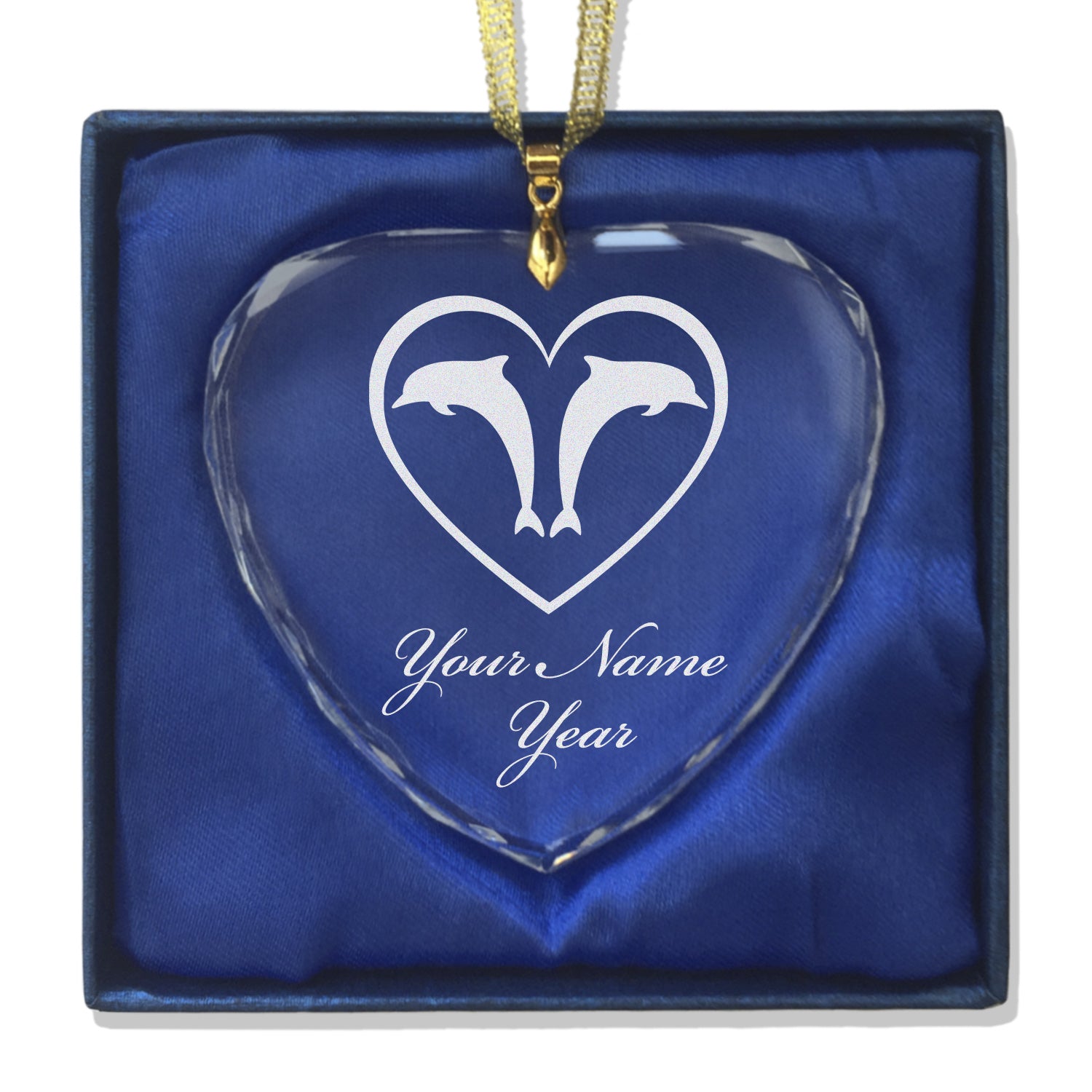 LaserGram Christmas Ornament, Dolphin Heart, Personalized Engraving Included (Heart Shape)