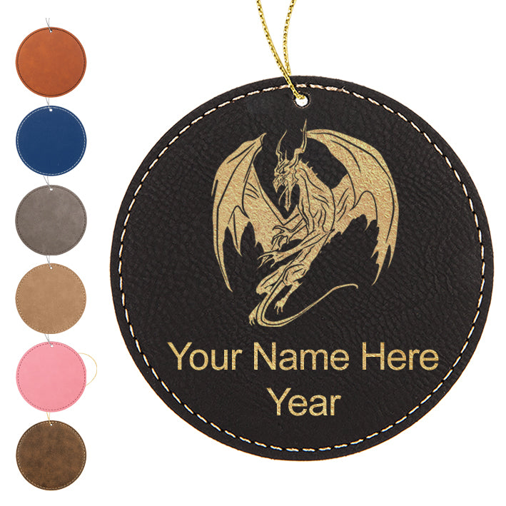 LaserGram Christmas Ornament, Dragon, Personalized Engraving Included (Faux Leather, Round Shape)