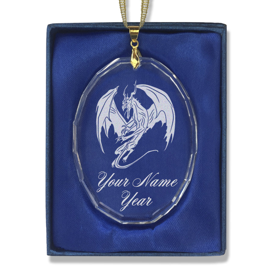LaserGram Christmas Ornament, Dragon, Personalized Engraving Included (Oval Shape)