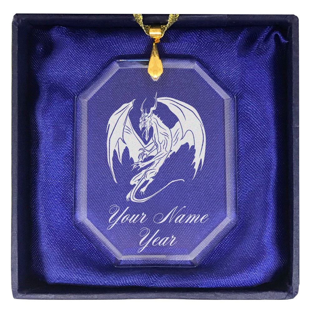 LaserGram Christmas Ornament, Dragon, Personalized Engraving Included (Rectangle Shape)