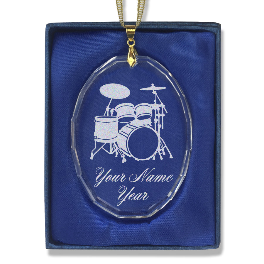 LaserGram Christmas Ornament, Drum Set, Personalized Engraving Included (Oval Shape)
