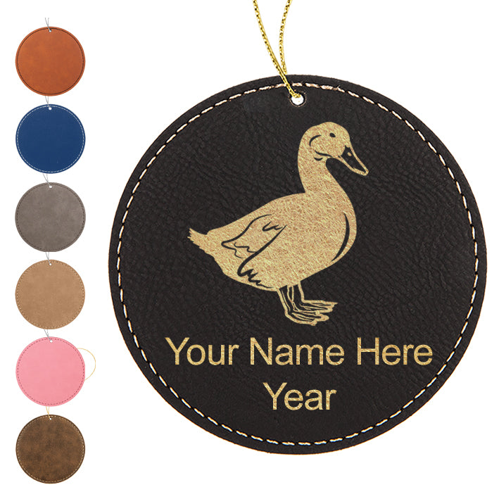 LaserGram Christmas Ornament, Duck, Personalized Engraving Included (Faux Leather, Round Shape)
