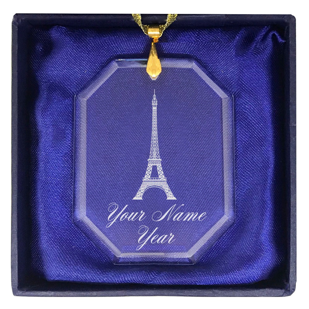 LaserGram Christmas Ornament, Eiffel Tower, Personalized Engraving Included (Rectangle Shape)