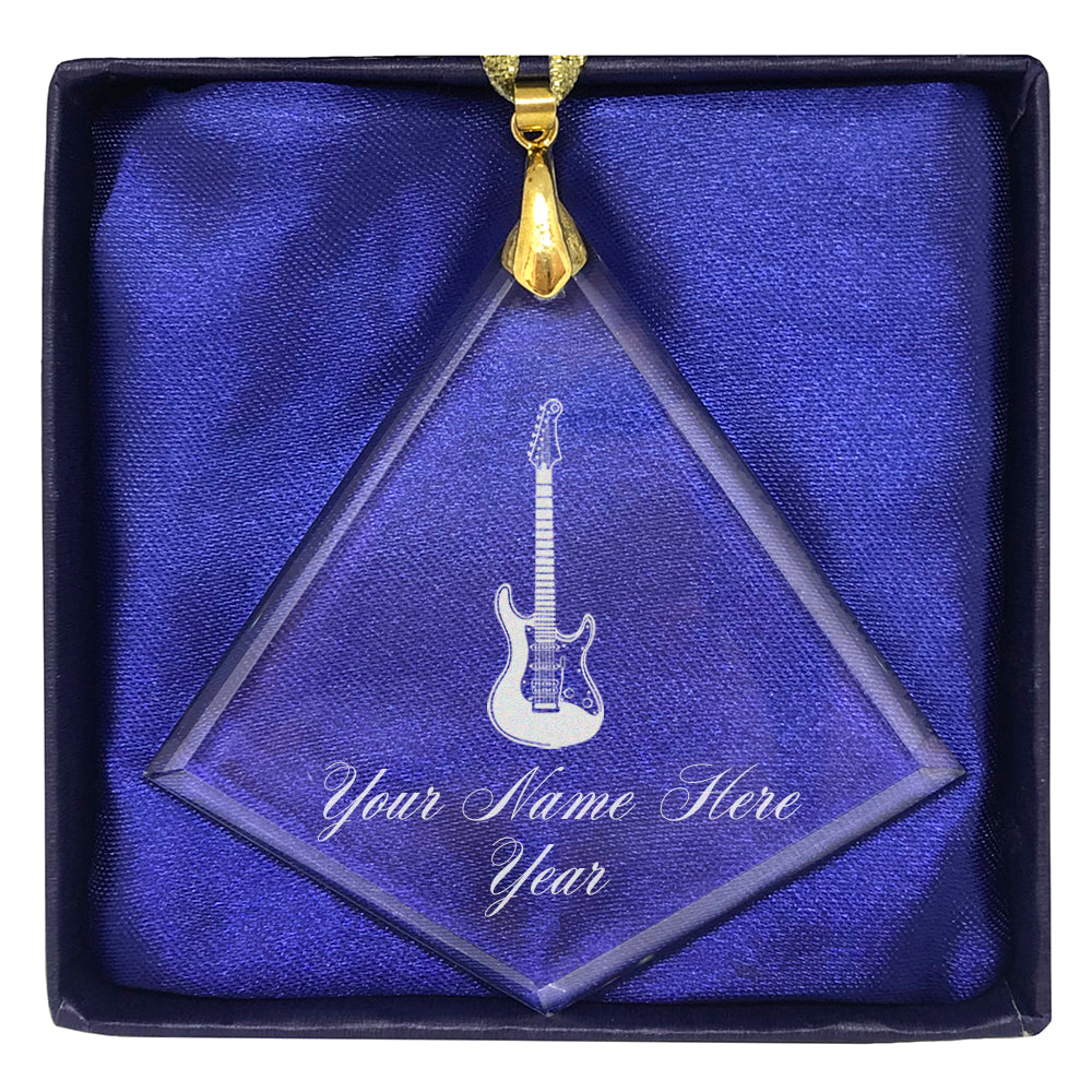LaserGram Christmas Ornament, Electric Guitar, Personalized Engraving Included (Diamond Shape)