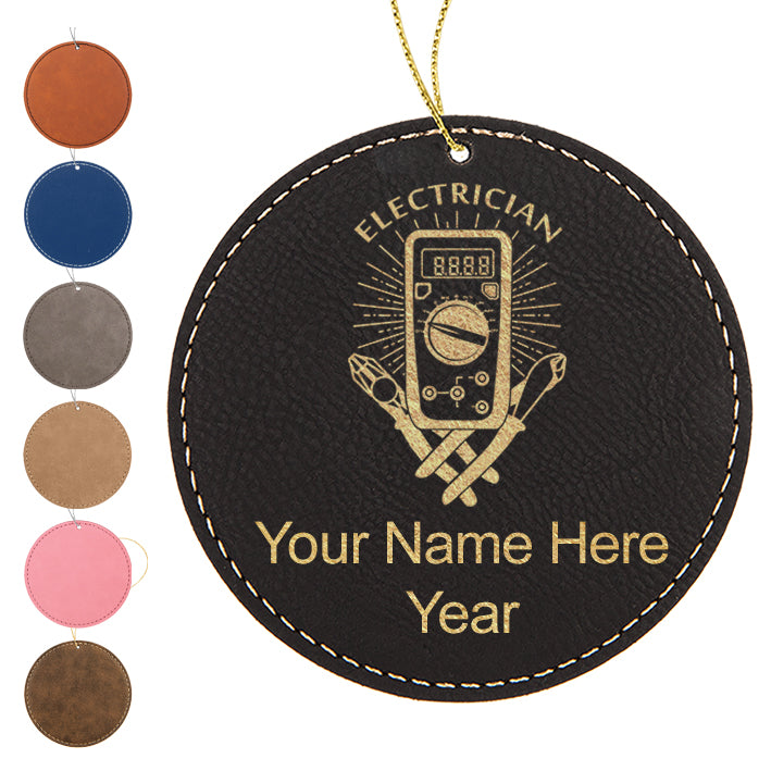 LaserGram Christmas Ornament, Electrician, Personalized Engraving Included (Faux Leather, Round Shape)