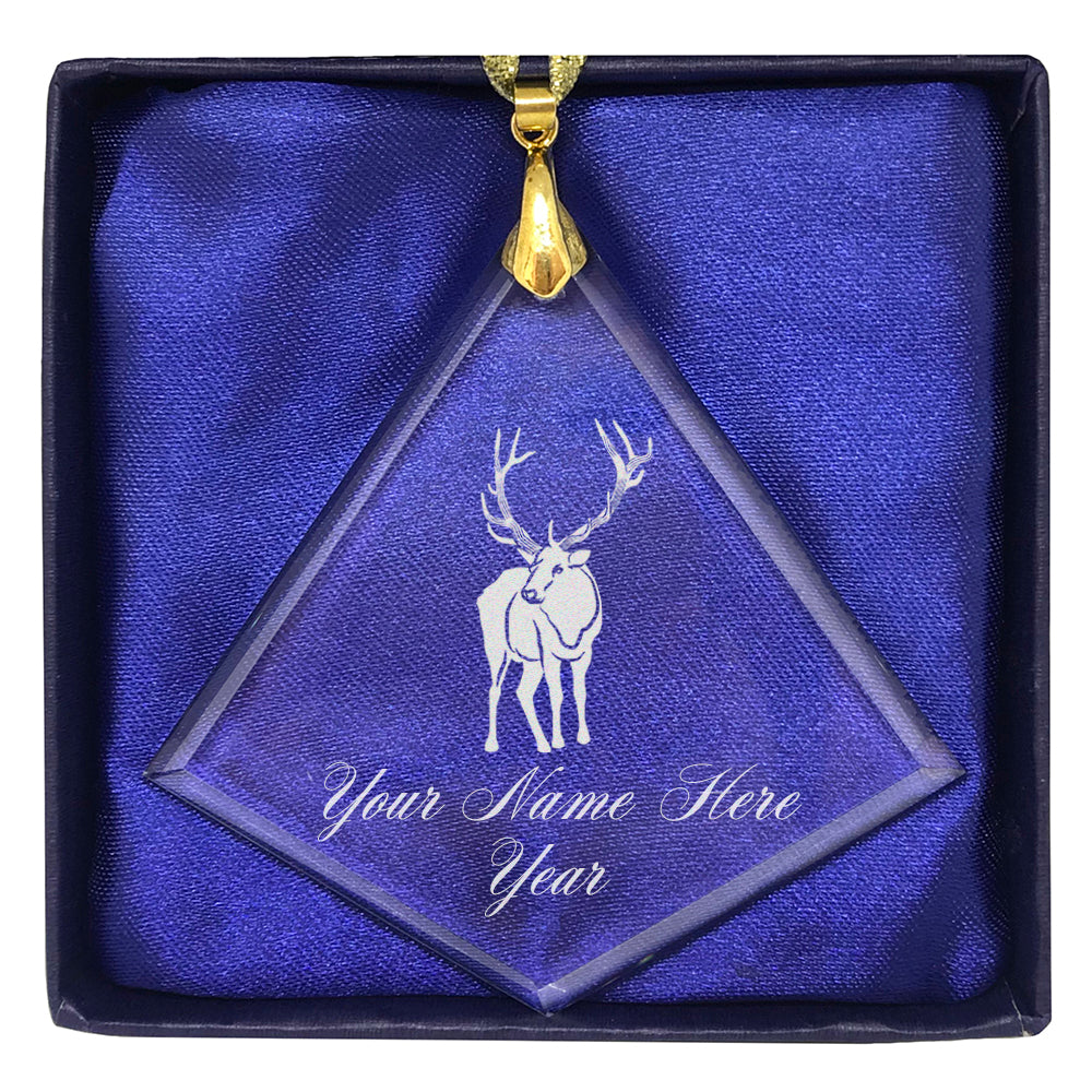 LaserGram Christmas Ornament, Elk, Personalized Engraving Included (Diamond Shape)