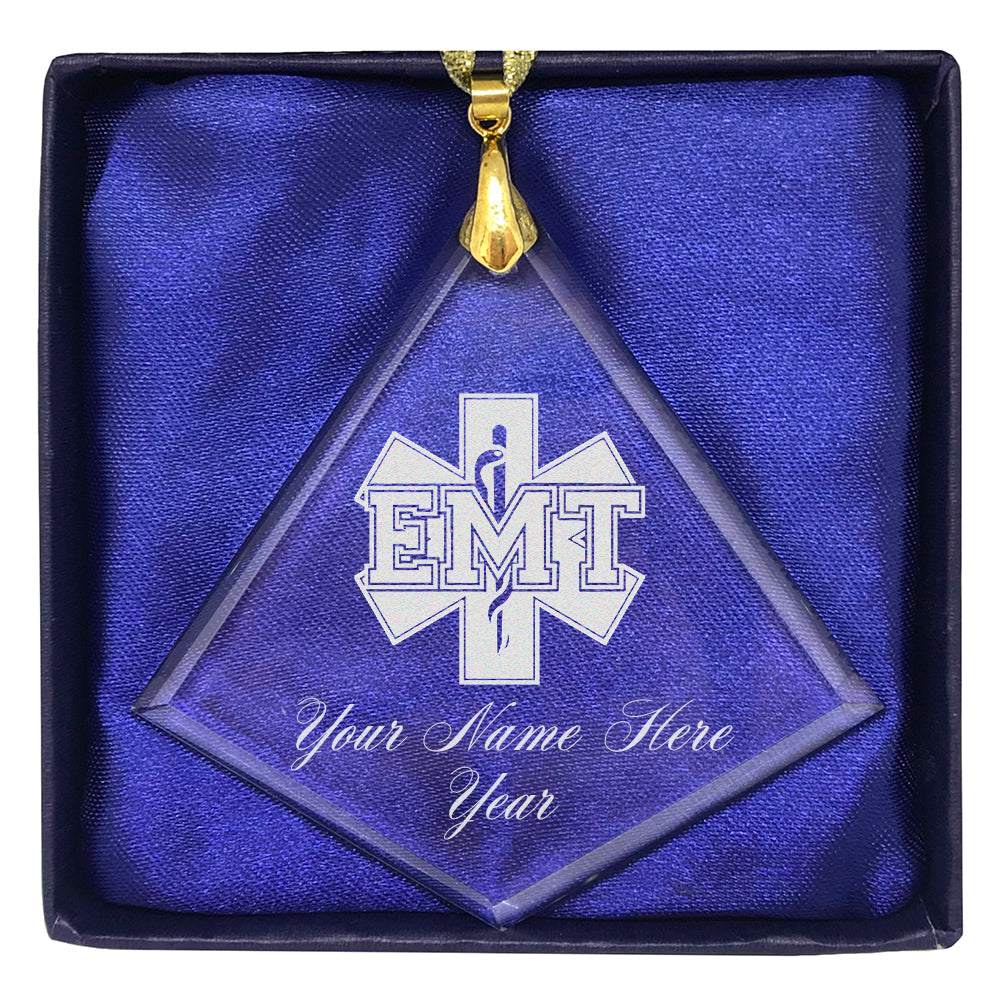 LaserGram Christmas Ornament, EMT Emergency Medical Technician, Personalized Engraving Included (Diamond Shape)