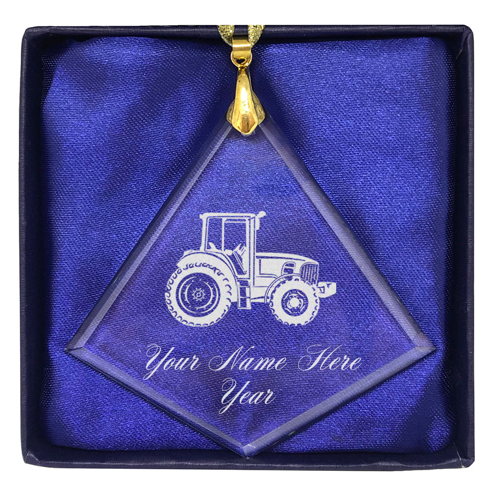 LaserGram Christmas Ornament, Farm Tractor, Personalized Engraving Included (Diamond Shape)