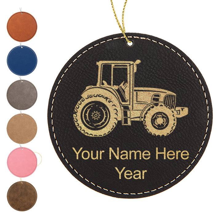 LaserGram Christmas Ornament, Farm Tractor, Personalized Engraving Included (Faux Leather, Round Shape)