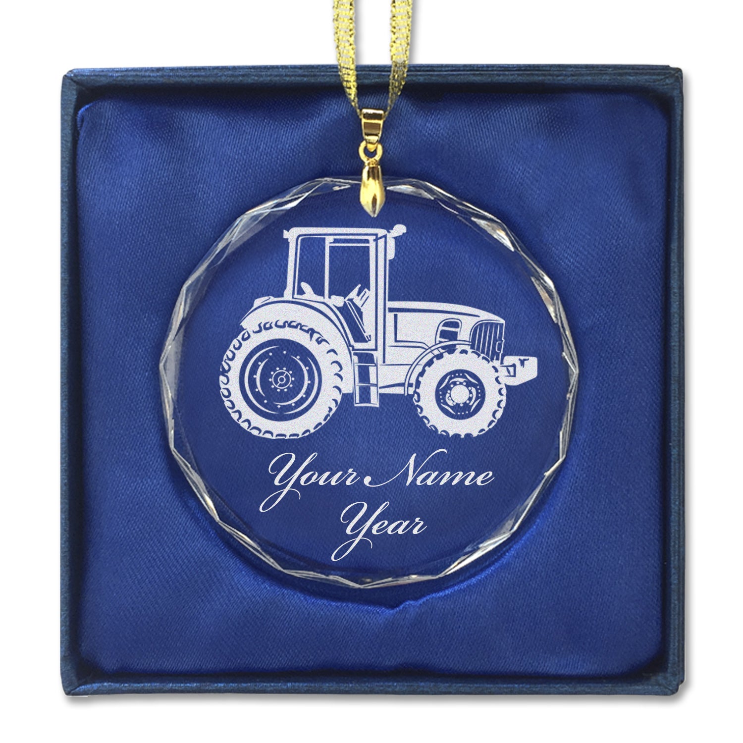 LaserGram Christmas Ornament, Farm Tractor, Personalized Engraving Included (Round Shape)