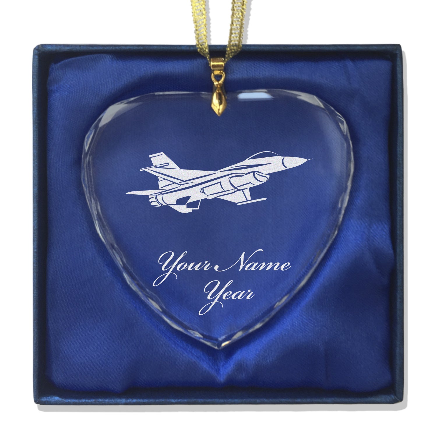 LaserGram Christmas Ornament, Fighter Jet 1, Personalized Engraving Included (Heart Shape)