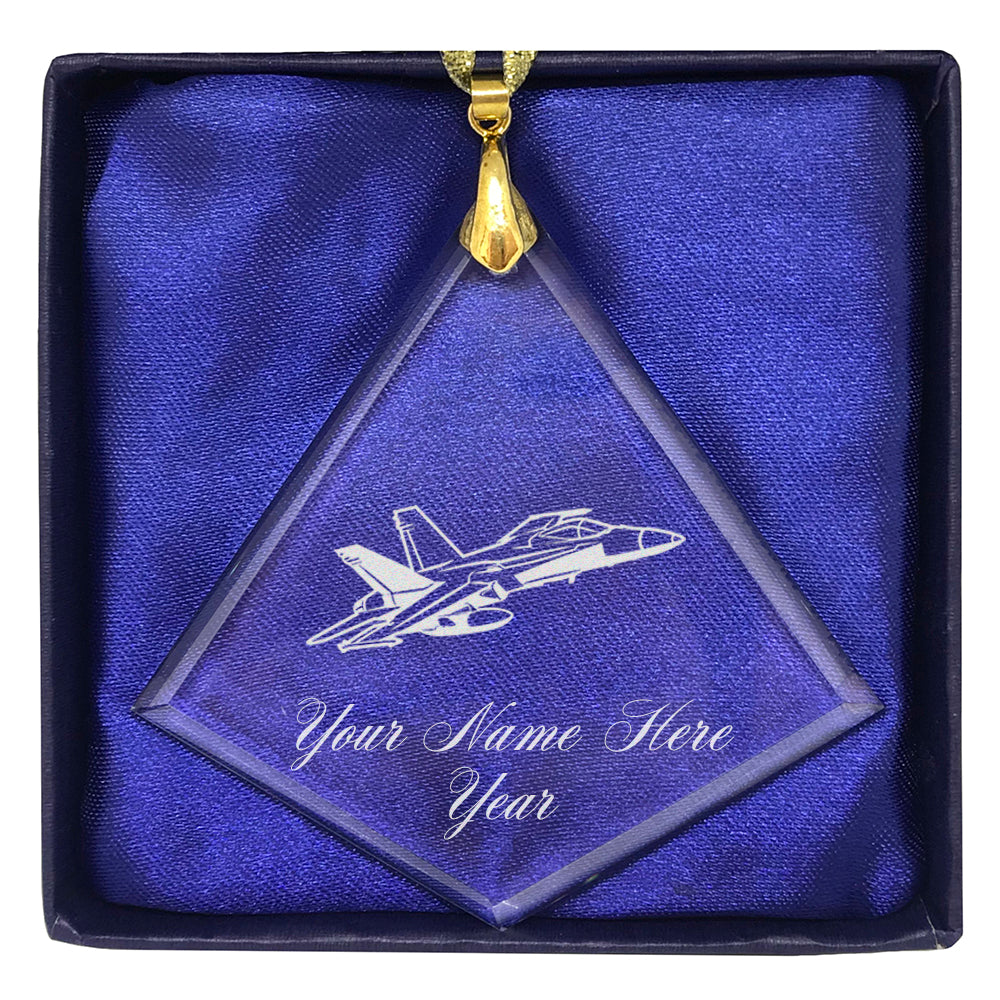 LaserGram Christmas Ornament, Fighter Jet 2, Personalized Engraving Included (Diamond Shape)