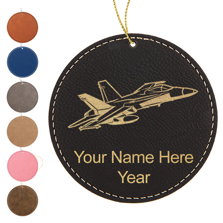 LaserGram Christmas Ornament, Fighter Jet 2, Personalized Engraving Included (Faux Leather, Round Shape)