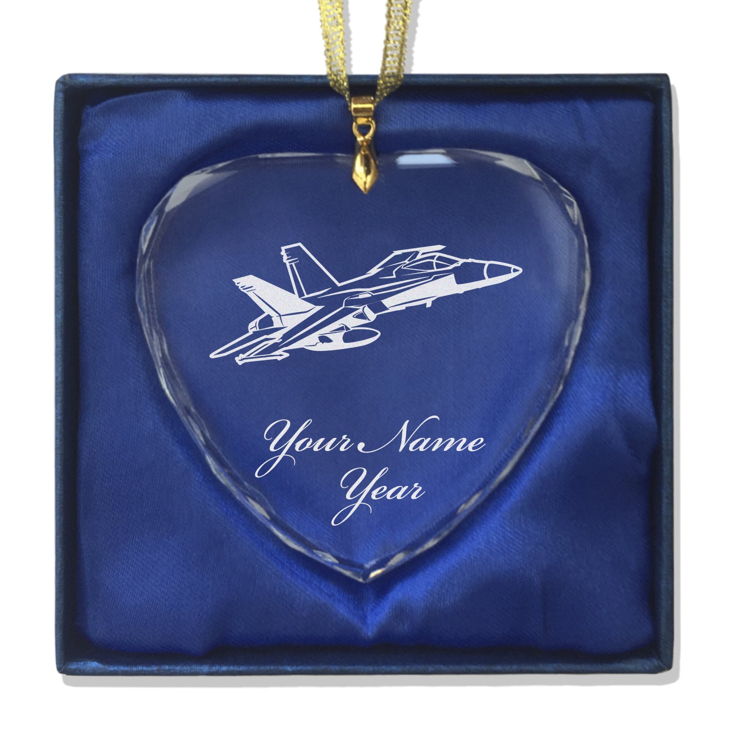 LaserGram Christmas Ornament, Fighter Jet 2, Personalized Engraving Included (Heart Shape)