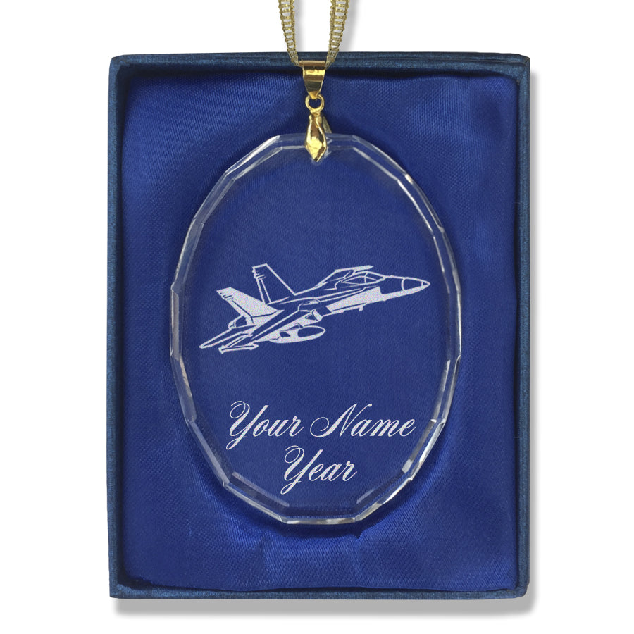 LaserGram Christmas Ornament, Fighter Jet 2, Personalized Engraving Included (Oval Shape)