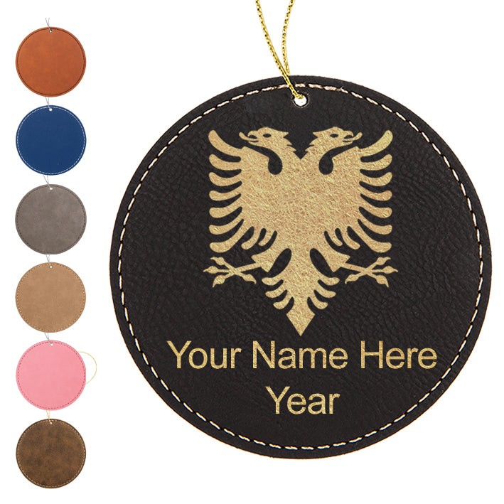 LaserGram Christmas Ornament, Flag of Albania, Personalized Engraving Included (Faux Leather, Round Shape)