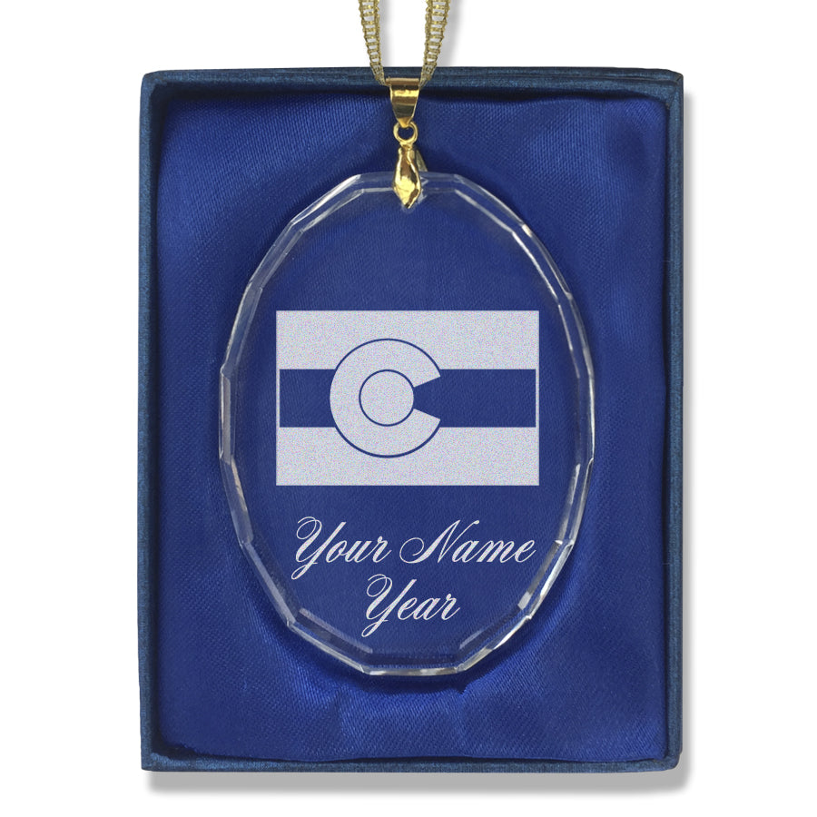 LaserGram Christmas Ornament, Flag of Colorado, Personalized Engraving Included (Oval Shape)