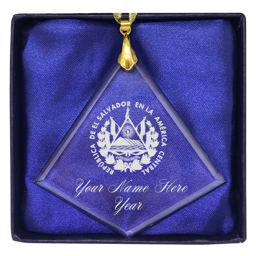 LaserGram Christmas Ornament, Flag of El Salvador, Personalized Engraving Included (Diamond Shape)