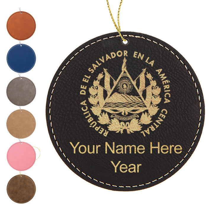 LaserGram Christmas Ornament, Flag of El Salvador, Personalized Engraving Included (Faux Leather, Round Shape)