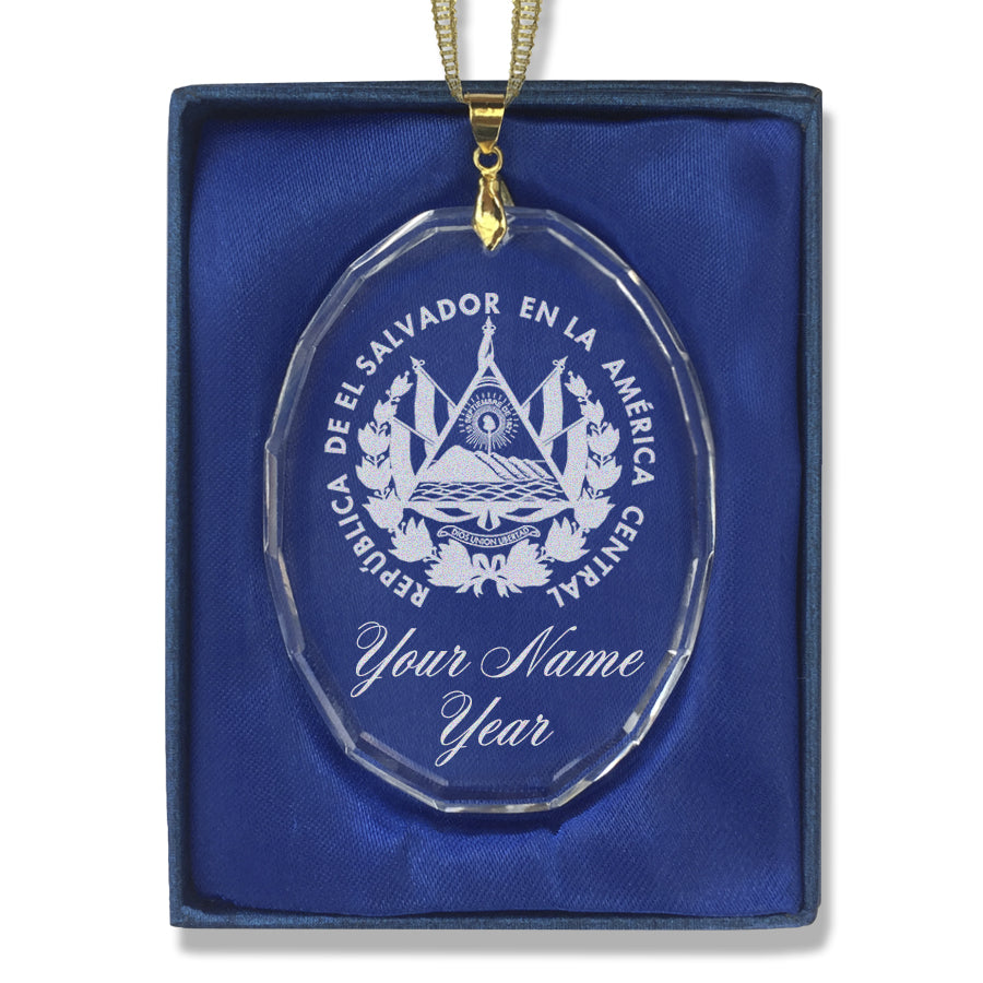 LaserGram Christmas Ornament, Flag of El Salvador, Personalized Engraving Included (Oval Shape)