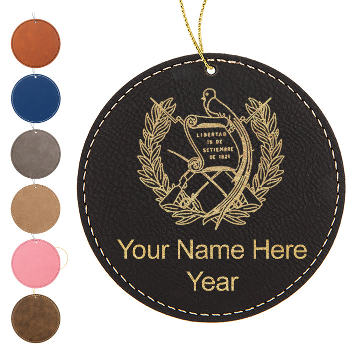 LaserGram Christmas Ornament, Flag of Guatemala, Personalized Engraving Included (Faux Leather, Round Shape)