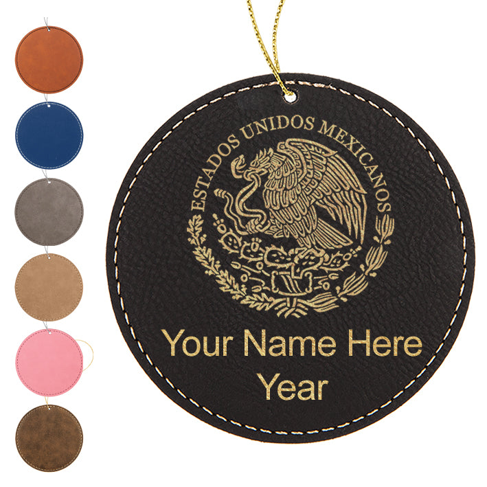 LaserGram Christmas Ornament, Flag of Mexico, Personalized Engraving Included (Faux Leather, Round Shape)